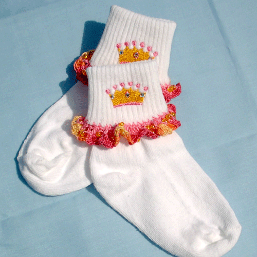 The finishing touch for every princess. These darling socks have an embroidered crown with Austrian cut crystal rhinstones to set the jewels.